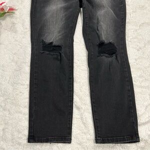 Vervet - York Plus High Rise Distressed Button Fly Ankle Black Skinny Jeans 16