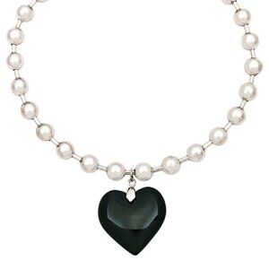 Lovers and Friends Parker Necklace in Silver & Black heart pendant