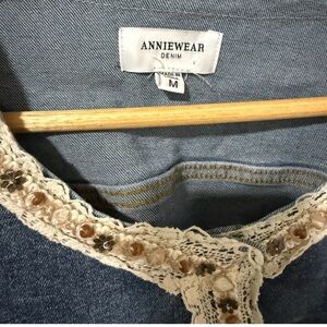 NWOT sz M Blue Denim Jacket with Crochet Details