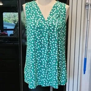 This sleeveless blouse from Croft & Barrow features a vibrant green hue with a delicate pattern, offering a relaxed fit and a polished look. The V-neckline is enhanced with subtle pleating, adding a touch of elegance to its flowing, lightweight fabric. Ideal for both casual and formal settings, this top combines comfort with style.