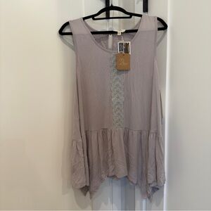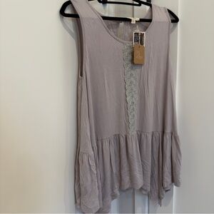 Brand new flowy tank top in a dusty purple/lilac lavender color with lace detailing. Made with 95% all natural bamboo.