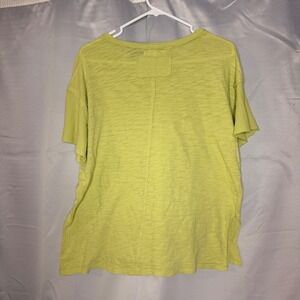 Free People Washed Out Slub Knit Textured Sleeve Tee Shirt Yellow XS
