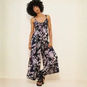 NWT Free People Melrose Wide Leg Jumpsuit Size XS Floral Print Smocked Waist