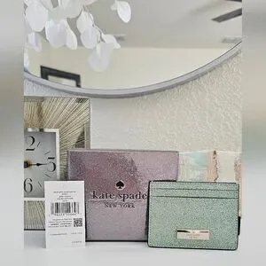 NWT Kate Spade Seawater Glitter Cardholder Wallet