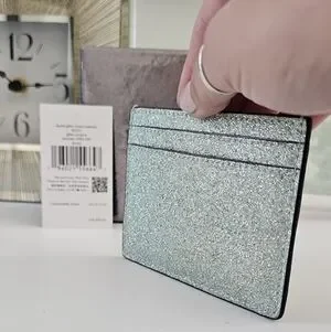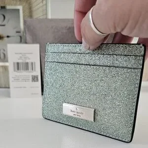 NWT Kate Spade Seawater Glitter Cardholder Wallet has 4 exterior card slots & internal slot. MSRP $99