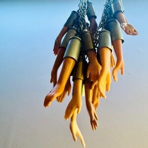 Quirky Barbie Hand and Bullet Shell Casing One of a Kind Charm Necklace