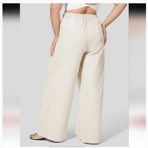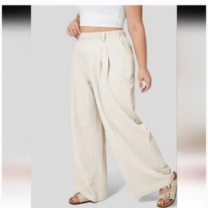 High Waisted Pocket Wide Leg Flowy Solid Palazzo Casual Linen-Feel Pants