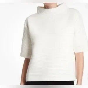 French Connection Winter White Wide Ribbed Short Sleeve Knit Sweater Top