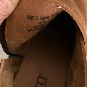 There’s elastic on the sides of the boots that provides some give for high insteps. The boots zip on the inside of the ankles. Soles are rubber. The uppers are side, with a heel that is leather. The size is shown as 9/40.5 M/W. I wear a medium width and they fit me.