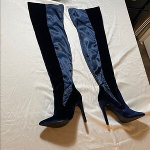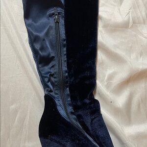 Chic velvet texture. Striking over the knee style. Ideal for a night out.