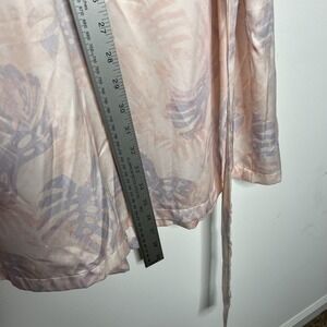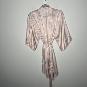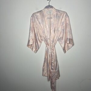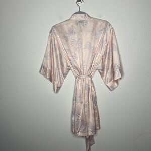 Gilly Hicks Robe Womens S/M Pink Satin Tropical Palm Kimono Belted Sleepwear