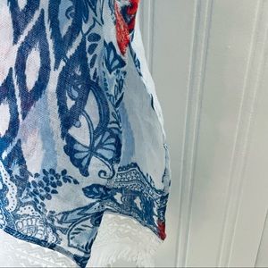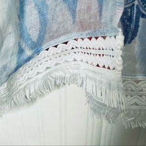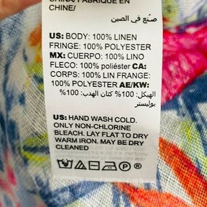 Chico’s NWOT Ikat Paradise Ruana linen fringe kimono coverup top Small/Medium