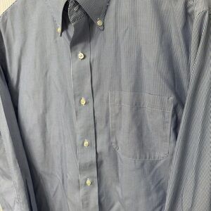 ❄️Excellent used condition! Vertical pinstripe in blue and white colorway. Buttons are in perfect condition. 100% cotton. Has left breast pocket. Size says 16-32. Perfect for a casual date, wedding or office work.