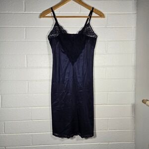 Vtg Vassarette Chemise Navy Lace Trim Slip Dress 36 Lingerie Coquette Romantic