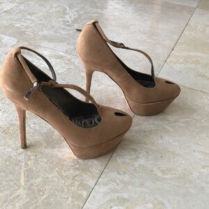 Sam Edelman Ankle T-Strap Pumps -Camel Suede - 8.5