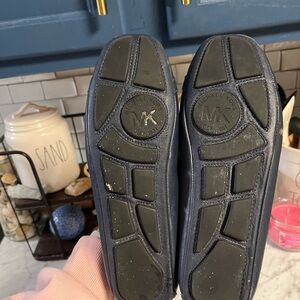 Chic navy blue flats with signature gold logo detail. Comfortable and stylish for everyday wear.