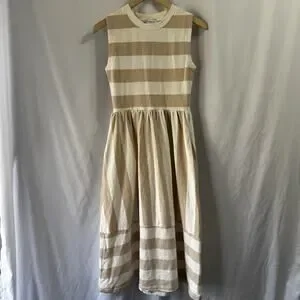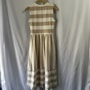 Evereve Women’s Dress Beige White stripe XS Midi Classic Preppy Terry Pockets
