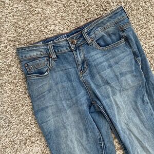 DKNY Spring Street Flare Jeans Light Wash Rhinestone Size 4 Vintage Y2K