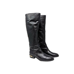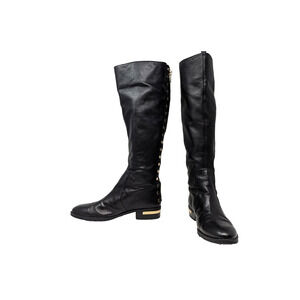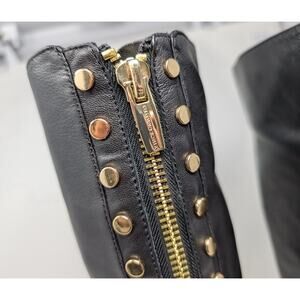 Vince Camuto Riding Boots Black Leather Gold Studded Parshell Women's Size 7.5