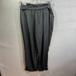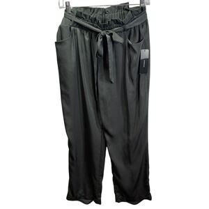 Lulus Chic Gray Paper Bag Tie Waist Pants Medium M NWT Shiny Dressy Cuff Hem