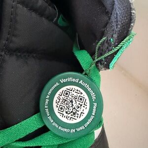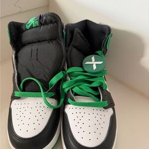 Stylish Nike high-tops. Black, white, and green colorway. Perfect for everyday wear. Authenticated by Stock X. Never worn.