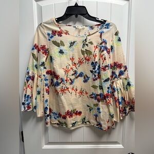 Jane and Delancey floral print bell sleeve top blouse in 100% cotton. Size med