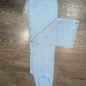 Stylish light blue jeans with a wide leg design. Perfect for casual wear. size 25x31