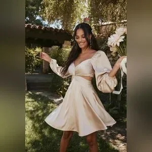 NWT ASTR The Label Anamaria Cut Out Dress Champagne Pink Satin Size M