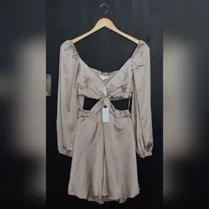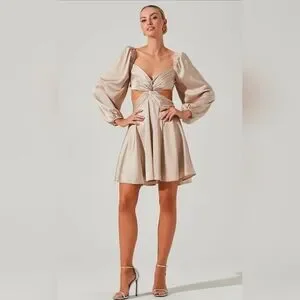 NWT ASTR The Label Anamaria Cut Out Long Sleeve Mini Dress in Champagne Light Pink. One small run/snag on sleeve (see last photo) Size medium