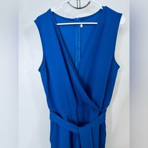 Blue Sleeveless Jumpsuit Women Size Large Back Zipper Closure Belt Included