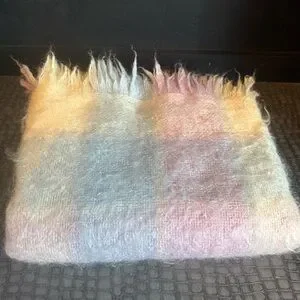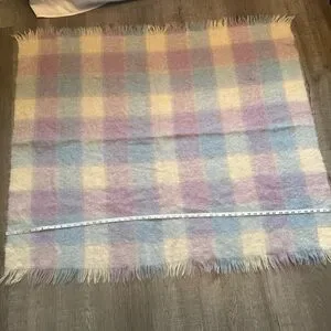 Add warmth and style to your home with this cozy multicolor plaid throw blanket. Featuring a blend of soft pastel hues, it's perfect for any living space.