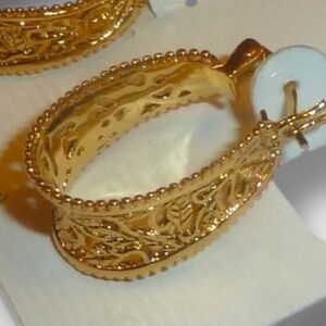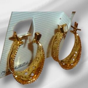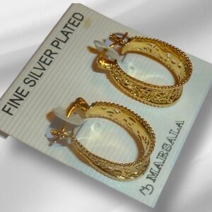Pretty gold colored, silver plated filigree hoops. By Marsala. New on card!