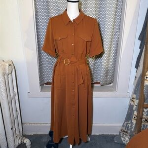 Sezane Raquel Dress in Caramel ASO Meghan Markle