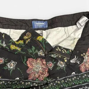 Old Navy Floral Black Cotton Chino Everyday Short Pink Yellow White Green size 6