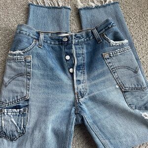 Re/Done levi's 25 so original and cool! frayed hems. Classic light blue wash. Perfect for casual wear. apprx waist 28 rise 10 inseam 25.5 so soft slim fit