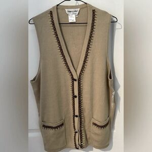A vintage vest new with tags. A find! Long, roomy with beaded edges and buttons in a deep beige/tan.