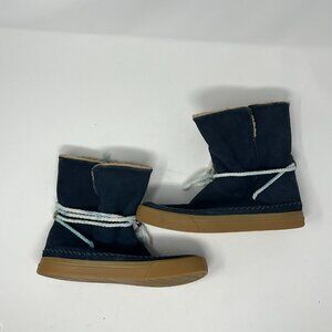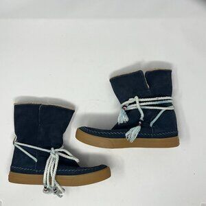 Toms Vista women's Ankle boots, can be worn with top folded over or straight up. Size 8. Ties around ankle. Faux shearling lining. Suede like exterior. Gently worn, in very good used condition. Some lint on insides and minor wear on soles. See photos.