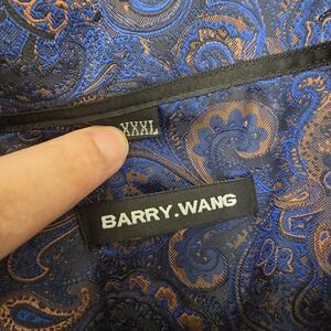 Barry Wang Men's 3XL Blue Paisley Long Sleeve Button Down Dress Shirt Jacquard