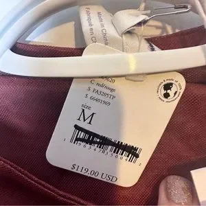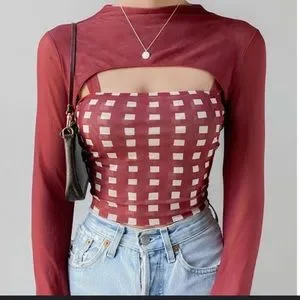 Free People Two Piece Burgundy Checkered Mesh Crop Top Medium NWT