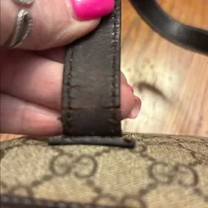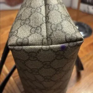Gucci GG Supreme Joy Tote. Crafted from durable coated monogram canvas with rich dark brown leather trim, this bag is both functional and iconic. Its spacious interior and sturdy leather straps make it the perfect companion for work, travel, or daily errands. The corners are really good. There’s one purple spot on the bottom as noted in the photo. It has a little bit of darkening at the top edge, but it’s really not noticeable when you’re looking at it per se. The interior is clean. Zipper runs. The handles on the outside are really good three underneath have the wire I have been putting in conditioner on it every day and will keep doing so the bag measures 14 x 8 x 4 handle drop is 8 inches. There’s no smell on the interior to note but everyone senses are different. Please look at all pictures closely because this bag is not a new bag and I’ve tried to point out all the flaws, but please ask any questions.