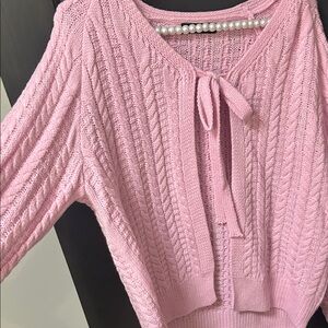 Stay cozy and stylish with this pink cable knit sweater. Perfect for layering, this sweater adds a touch of elegance to any outfit. P2P 20 inches