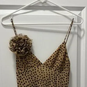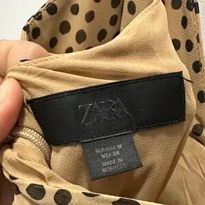 Zara Tan Maxi Dress with Black Dots