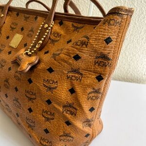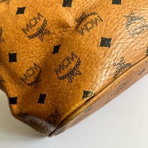 MCM COGNAC VISETOS COATED CANVAS TOTE.