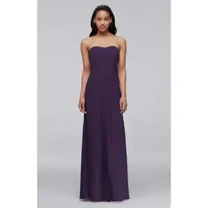 💙 David's Bridal Plum Chiffon Strapless Maxi Dress Size 12 Formal, bridesmaid,