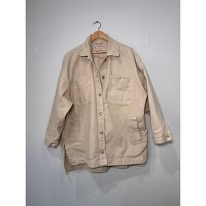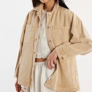 We The Free Oversized Beige Cotton Utility Shacket Jacket Women's Medium