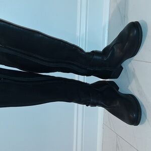 Stylish Black Faux Leather, Over the Knee Boots. Size 9Wide Calf, Lots Of Room