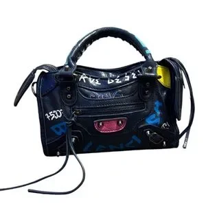 Graffiti Bags Leather Handbag Shoulder Bag with Zipper Closure and Printed Embellishments