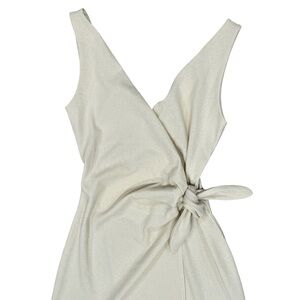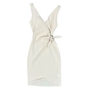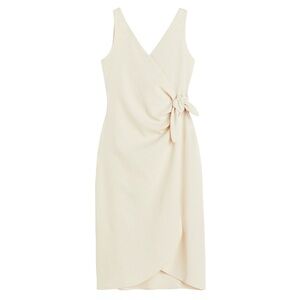 Chic cream wrap dress with a stylish knot detail. Sleeveless design for versatile wear.