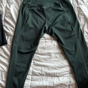 Both leggings are seamless front. No pockets and both size medium.