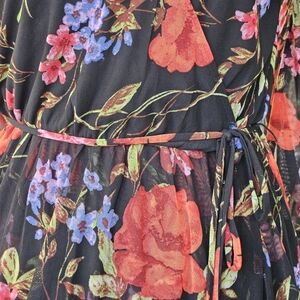 Harlow & Rose Floral Midi Dress Medium Faux Wrap Cottage Overlay Sheer Sleeves